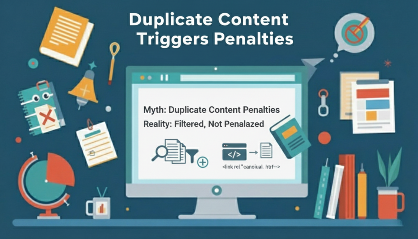Fear of duplicate content penalties prevents many sites from using necessary repetition like product descriptions or location pages. Google doesn’t penalise duplicate content in most cases. It simply filters redundant results to show users diverse options.