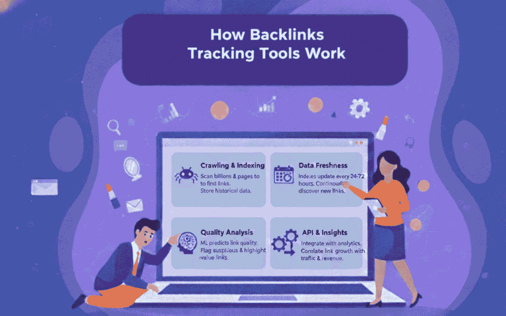 Backlink tracking tools use web crawlers to scan billions of pages and identify links pointing to your domain. They store historical data so you can compare link profiles over time. Most tools update indexes every 24 to 72 hours.