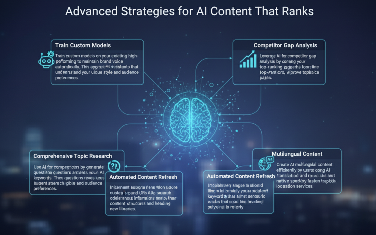 Leverage AI for competitor gap analysis by comparing your content against top ranking pages. Tools can identify missing subtopics and semantic terms that improve topical authority.