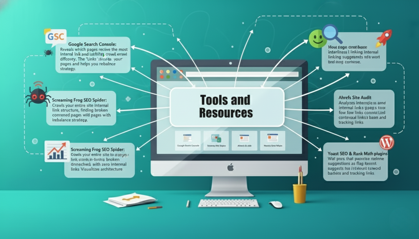Google Search Console is an important SEO tool that reveals which pages receive the most internal links and identifies crawl errors affecting link discovery. The “Links” report shows your most linked pages and helps you identify content that needs more internal support. Use this data to rebalance your linking strategy quarterly.