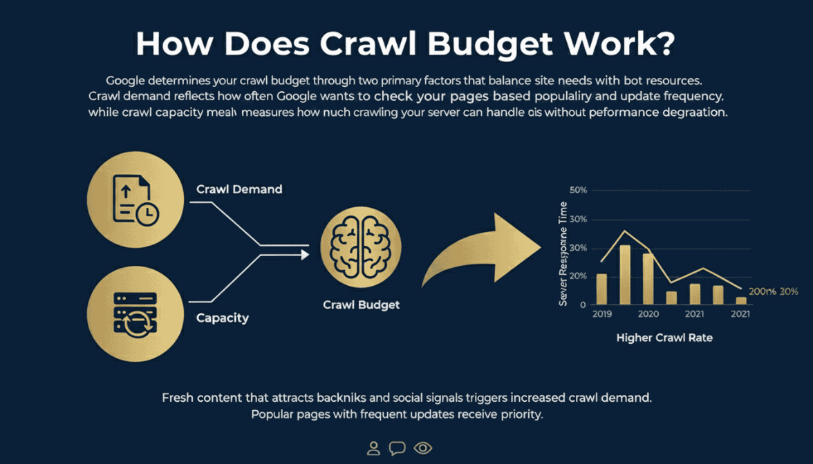 Google determines your crawl budget through two primary factors that balance site needs with bot resources. Crawl demand reflects how often Google wants to check your pages based on popularity and update frequency, while crawl capacity measures how much crawling your server can handle without performance degradation.