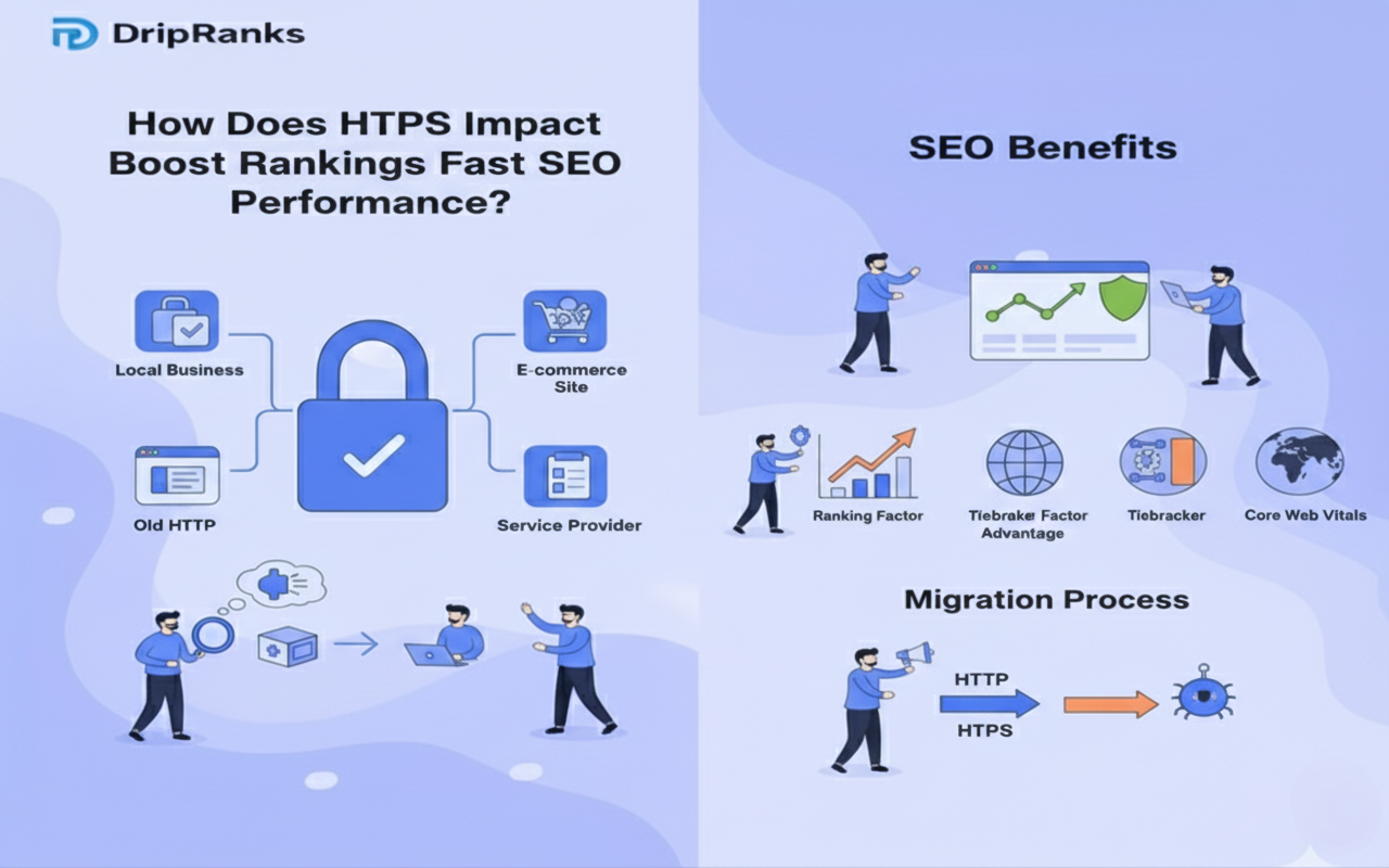This guide explains everything you need to know about HTTPS SEO. You’ll discover why HTTPS matters for rankings, how to migrate safely without losing traffic, and what mistakes to avoid during the transition. At Drip Ranks, we’ve helped dosens of businesses execute HTTPS migrations without ranking drops, and we’ll share proven strategies that work in 2025.